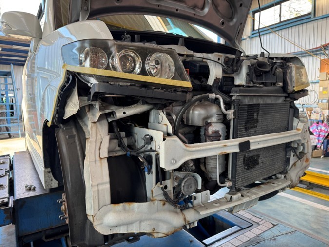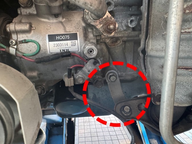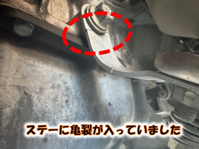 またエアコンコンプレッサーを固定するコンバータステーが振動により亀裂が入っていました。