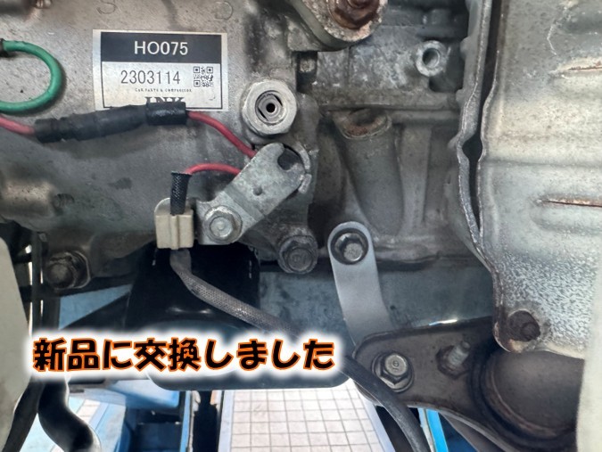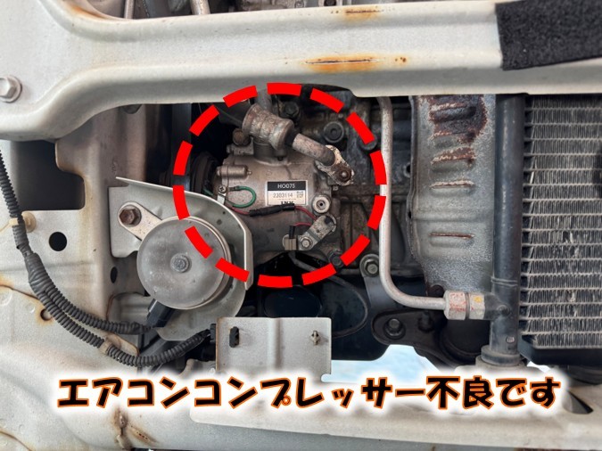 ヒーターが効かないと伺っていましたので調べていくと、エアコンコンプレッサーが故障していました。