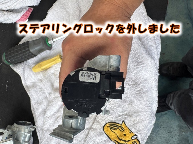 VW車両でキーが抜けない場合、ステアリングロック不良が原因のことが多いです。