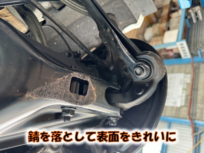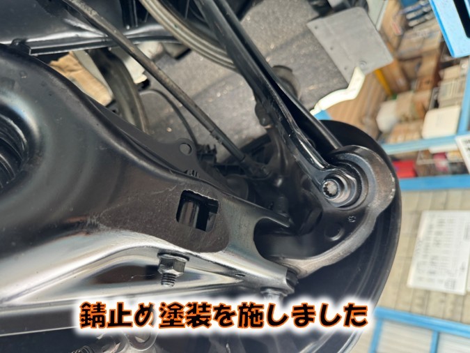 ロアアームは錆を落とし表面を整え、錆止め塗装を施しました。