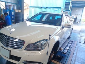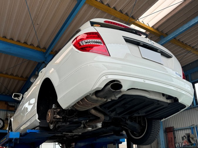 今回のお客さまは車体下をこすってしまったとご来店されたメルセデスベンツ C200です。