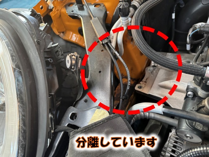 エンジンルームをみていくとなんとエンジンマウントが分離していました💦