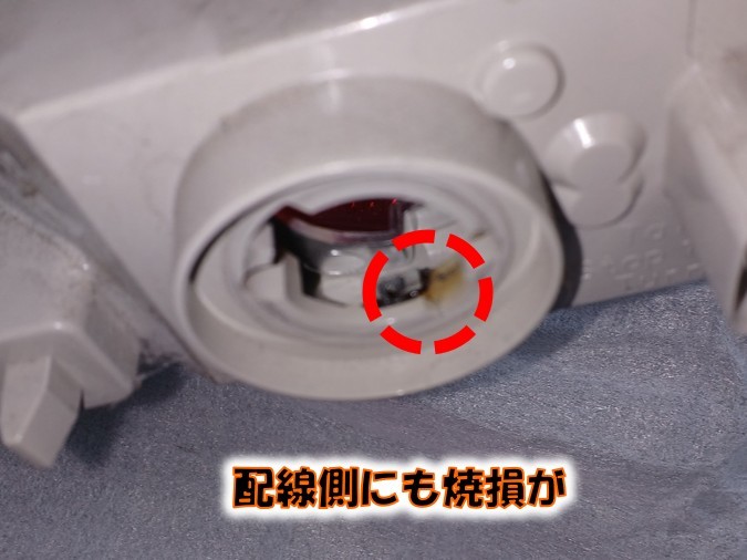 ストップランプ側と配線側両方の端子が焼損していたため